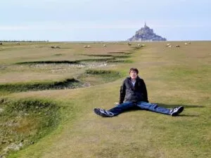 さらに、草原に座ってモンサンミッシェルを眺めている写真も届きました。